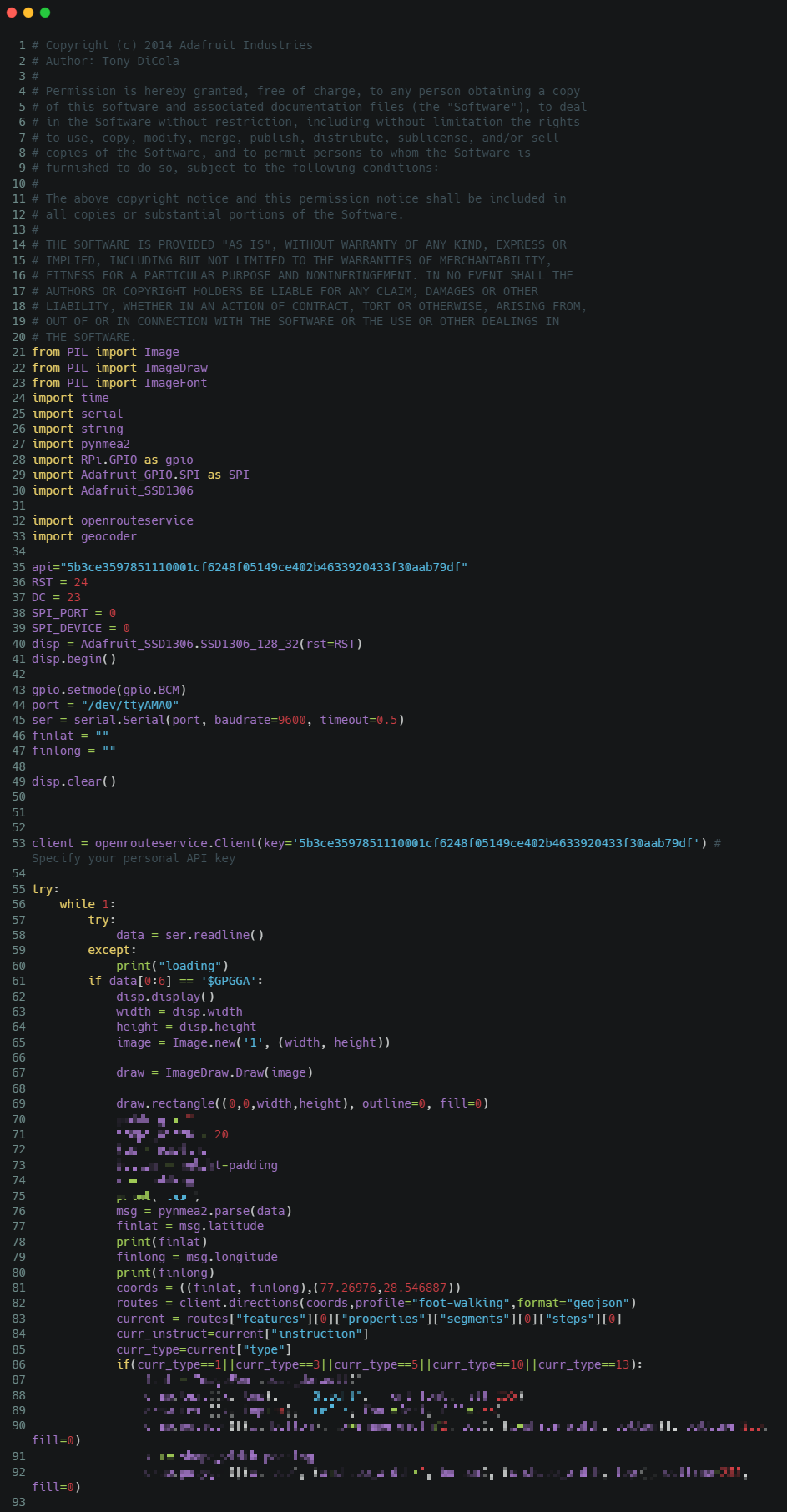 The cap is designed such that the screen does not obsruct vision while providing directions along with instructions for ease. We are currently using Open Route Service API but with proper funding we will use Google Maps API which provides better street navigation in India and also will allow us to choose destination from our mobiles.